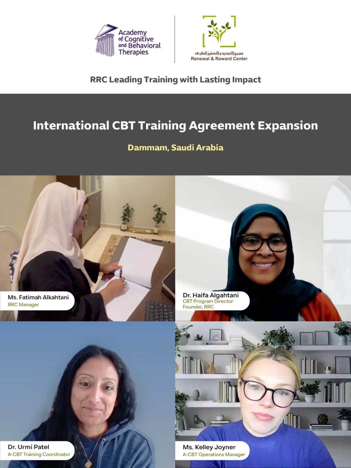 Following the success of initial cohorts, the Renewal & Reward Center (RRC), in collaboration with the Academy of Cognitive and Behavioral Therapies, is expanding our partnership to train three additional cohorts of mental health professionals.